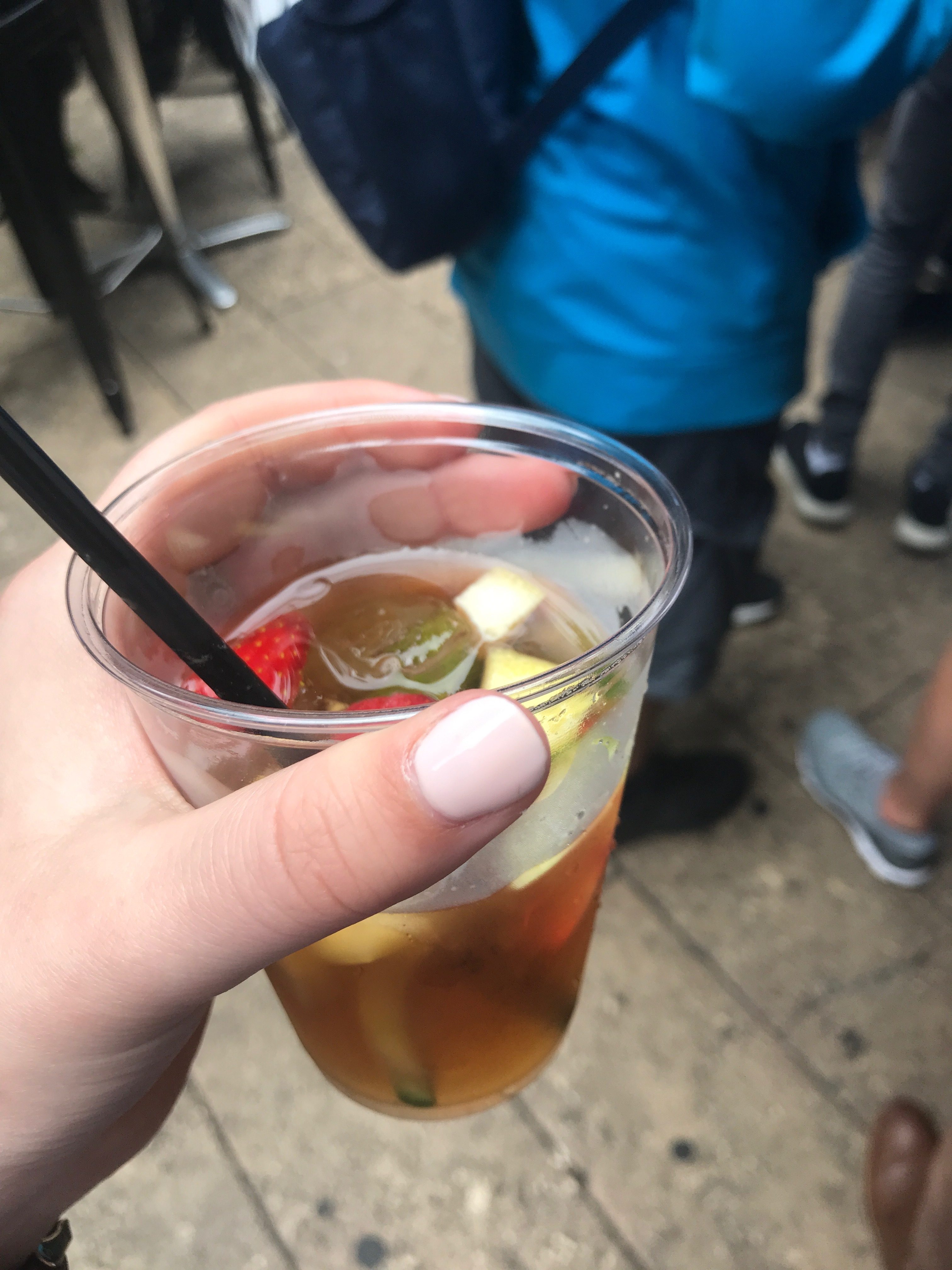 I spent this day heading into London with Tracey as Talia had to head back in to work for the day! Tracey and I took the train into London from Benfleet for a fun-filled day in London. To start, we headed to Borough Market, which is a massive food market with every kind of food vendor you can imagine. We walked around the entire market trying to decide what to have – from fresh fish, truffles, ethnic foods, cheeses, fresh fruit, smoothies… they had it ALL. Eventually we decided on getting some Pimm’s (trying to be authentically British ok) and I had a chicken burger & Tracey got some french fries (aka what the Brits call chips, hehe).