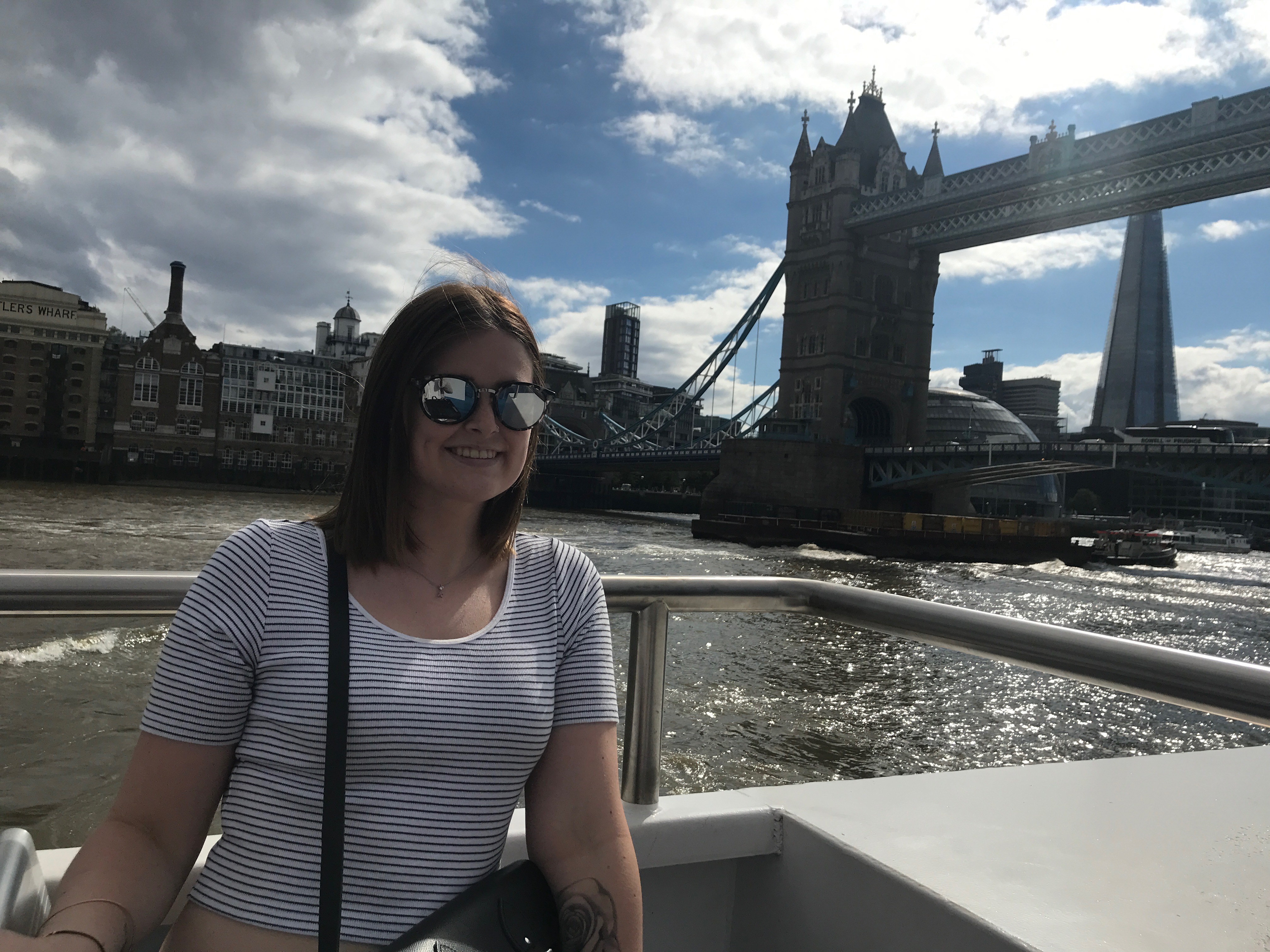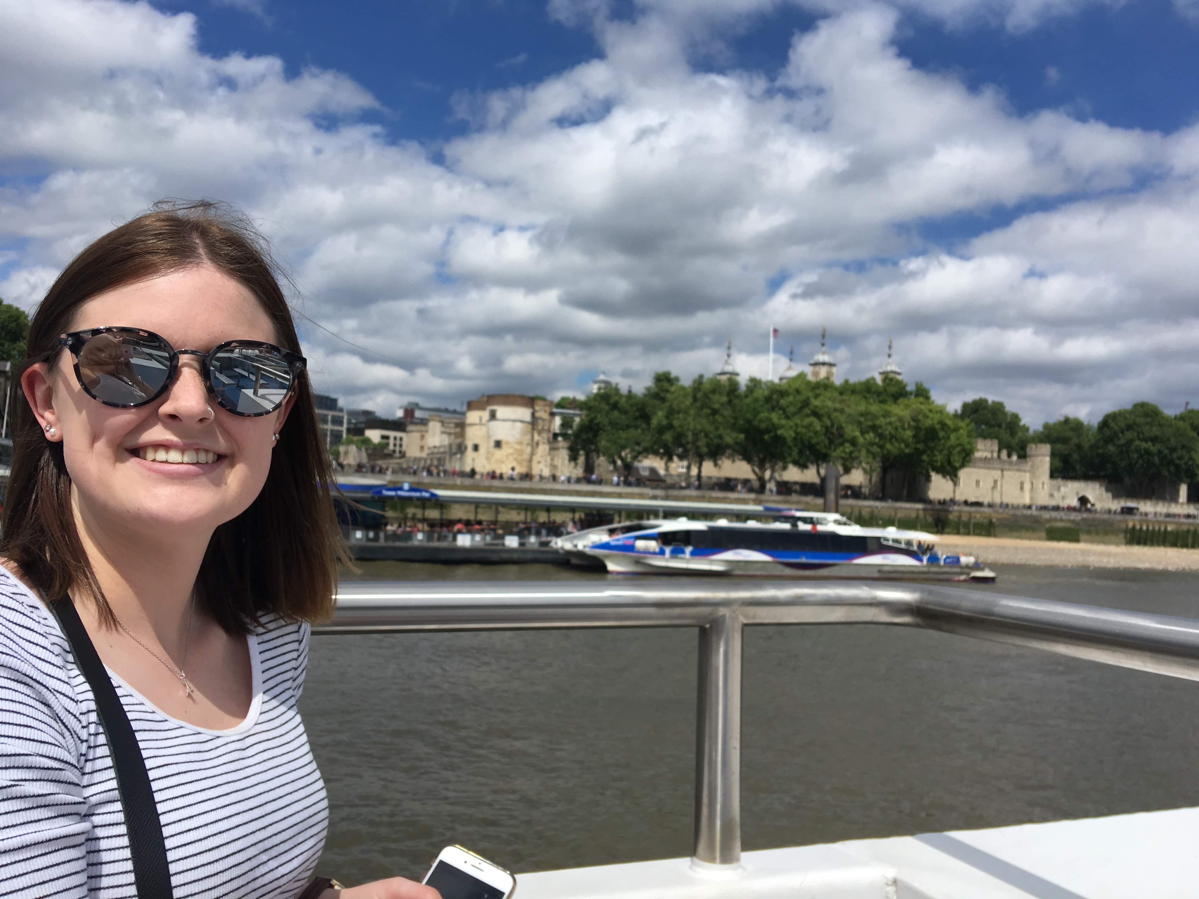 If you are in London on a nice, warm & sunny day, I would for sure recommend doing a river boat cruise – you get a whole new perspective of the city from the water and learn a lot from the commentary that is provided along the ride. Also, it is a great opportunity to get some super touristy pictures & Tracey took a lot of those for me 🙂